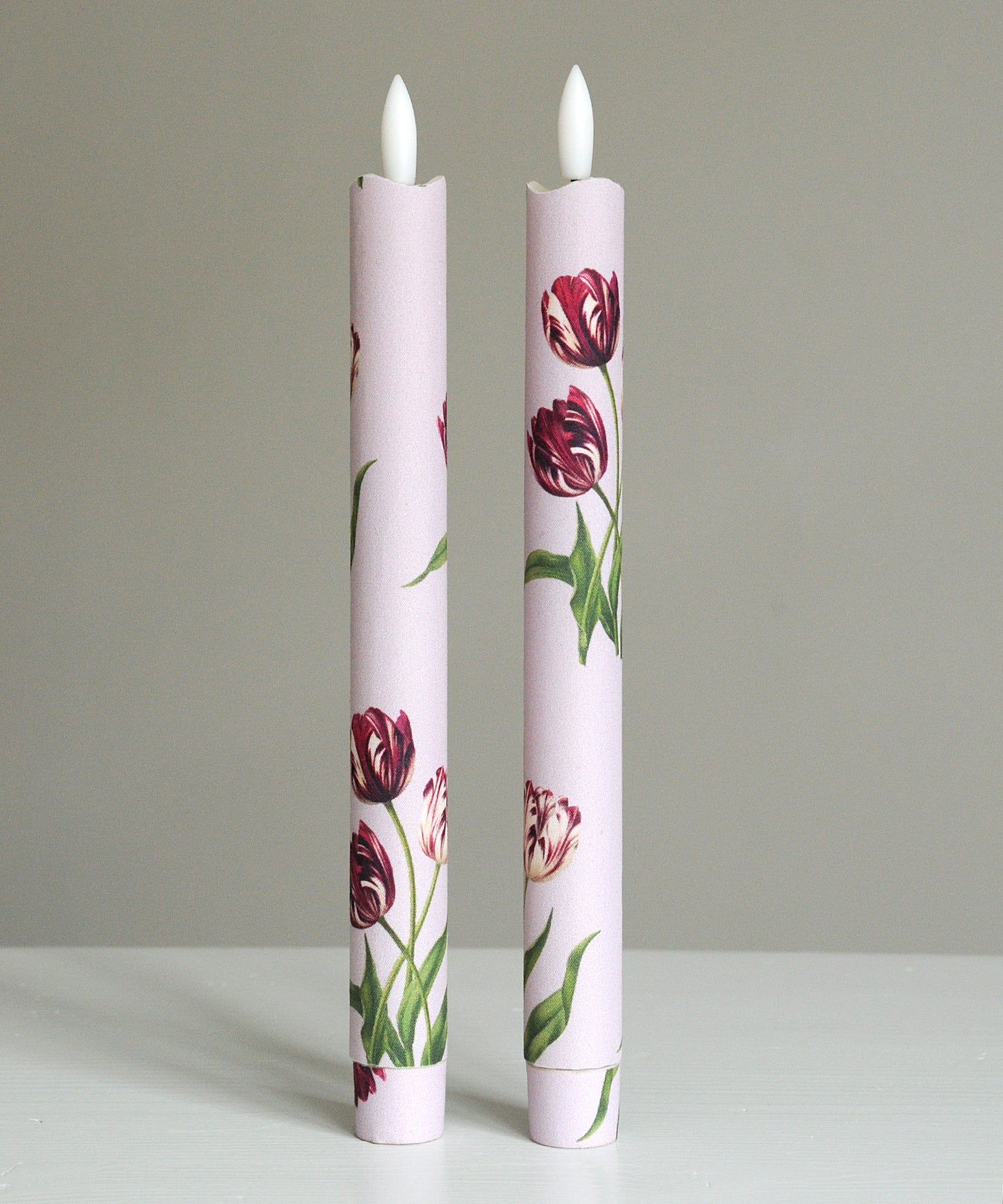 'Heritage Tulip Tea Rose' - Fabric wrapped Flameless LED Wax Candles